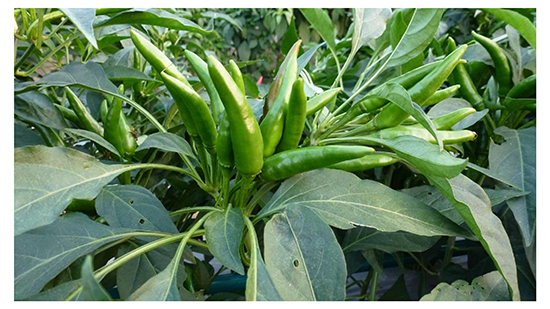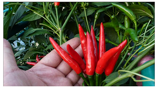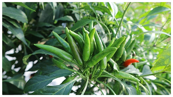 2.中早熟,直立簇生,辣味強(qiáng),每族6-8個(gè)果,果長(zhǎng)7cm左右